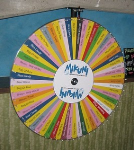 Helen Mosher gave us a heads-up that her colleague Maryann Lawlor was tweeting about swag from their conference. At one booth if you guessed the correct number of M&Ms in a jar, you could win a Snoopy lunchbox. In another you won prizes playing Wheel of Fortune. I’ve seen this at a restaurant in Sacramento – you spin the wheel on your birthday and have a chance at gift cards (best prize) or a bag of rice (worst but practical).